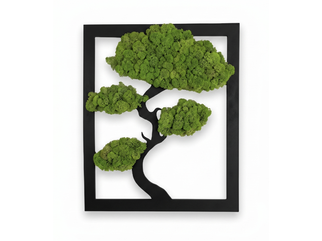 Elegantný obraz so stromom života vytvorený z pravého stabilizovaného machu predstavuje spojenie dizajnu, prírody a tradície. Symbolizuje rast, ochranu a vnútornú rovnováhu. Obraz je ručne vyrábaný a každý kus je originál – vďaka kvalitnému spracovaniu pôsobí autenticky a luxusne. Mach je hypoalergénny a úplne bezúdržbový – nevyžaduje svetlo, vodu ani strihanie.