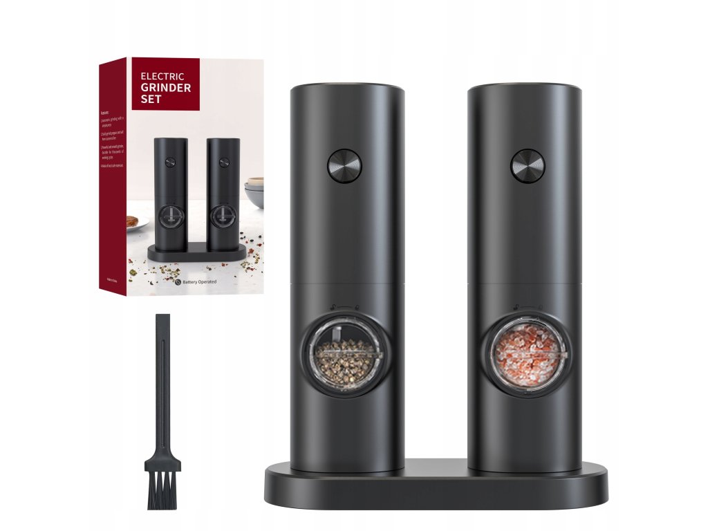 Elektrický mlynček na soľ a korenie s podstavcom – sada 2 ks