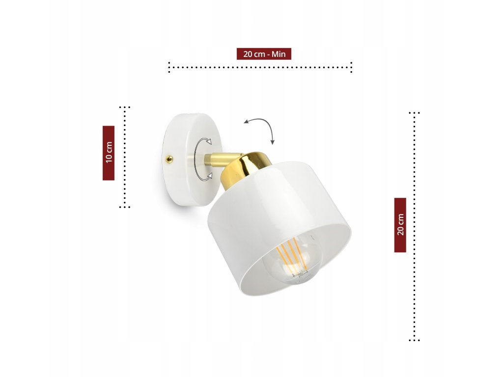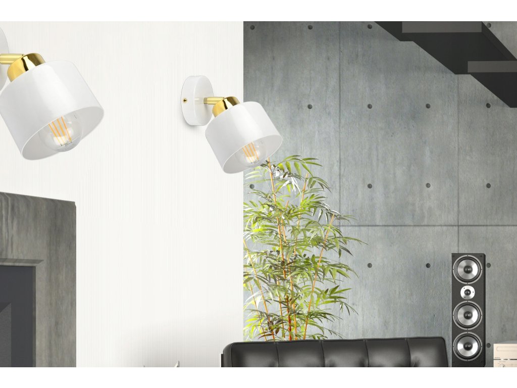Tento elegantný kinkiet zo série White Gold prináša do vášho interiéru čistotu bielej farby a noblesu zlatého detailu. Valcové kovové tienidlo v minimalistickom prevedení zapadne do moderných, škandinávskych aj elegantných priestorov. Vďaka pohyblivému kĺbu môžete jednoducho nastaviť smer svetla a nasvietiť presne tie miesta, ktoré potrebujete – napríklad dekorácie, zrkadlá či obľúbené obrazy.