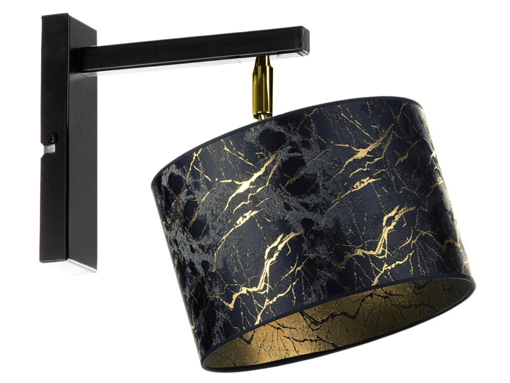 Black Marble Gold – nástenné svietidlo s čiernym tienidlom a mramorovým zlatým vzorom