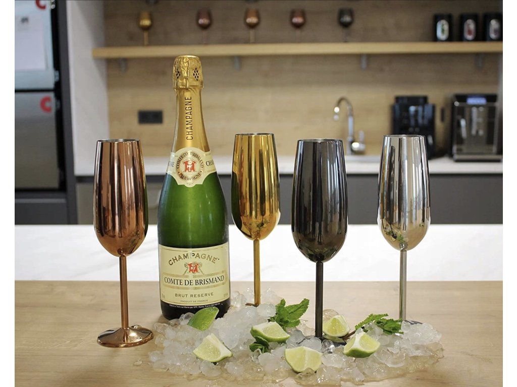 Vyrobený je z kvalitnej nerezovej ocele, vďaka čomu je odolný a nerozbitný. S objemom 250 ml je ideálny na šampanské, prosecco či sekt a udrží nápoj chladný dlhšie než klasické sklenené poháre. Či už ide o romantickú večeru, svadbu alebo záhradnú párty – vždy zaujme.
