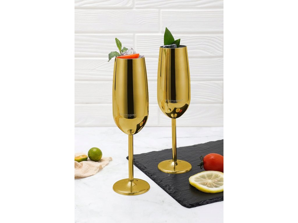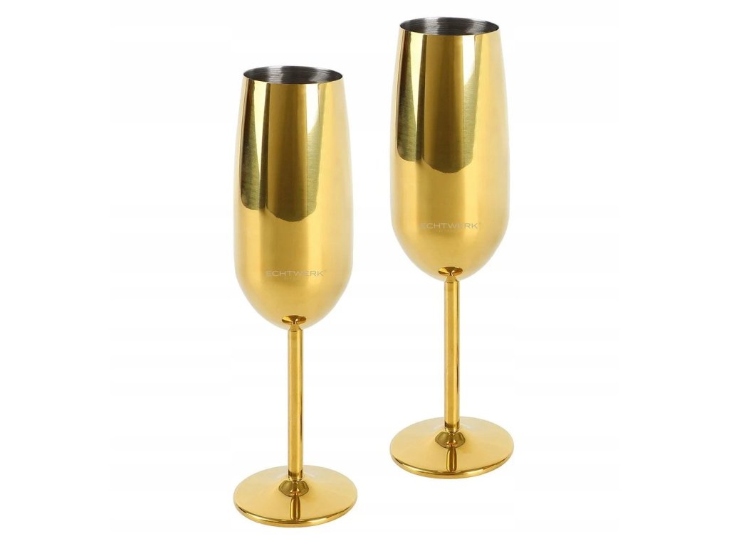 Sada 2 nerezových pohárov na šampanské – zlatý elegantný dizajn 250 ml