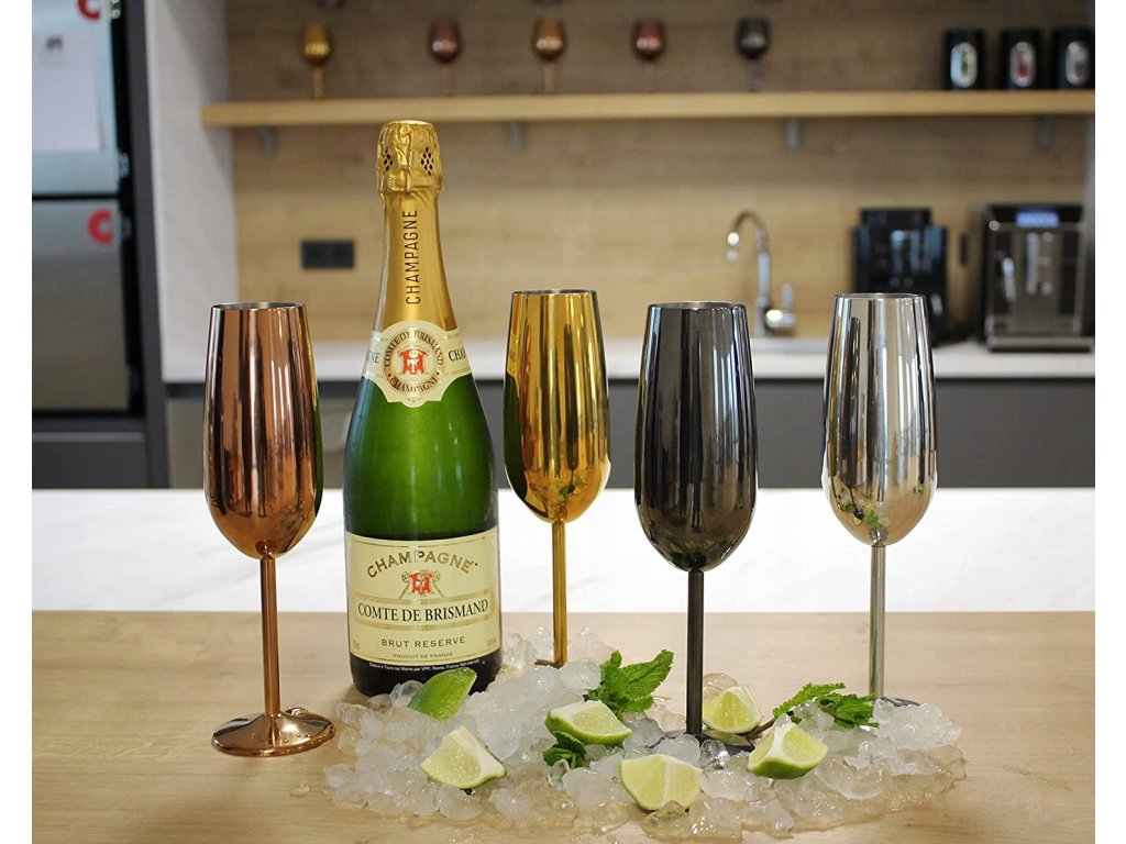Každý pohár je vyrobený z kvalitnej nerezovej ocele, ktorá zaručuje odolnosť a nerozbitnosť. Objem 250 ml je ideálny pre šampanské, prosecco či sekt. Navyše udržia nápoje chladné dlhšie než klasické sklenené poháre.