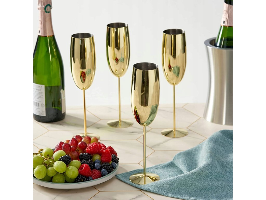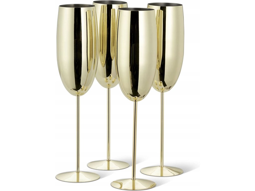 Sada 4 nerezových pohárov na šampanské – zlatý lesklý dizajn 280 ml