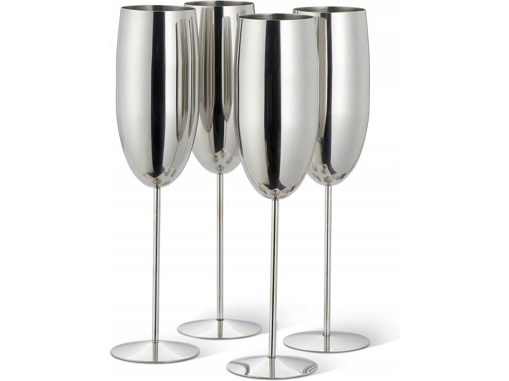 Sada 4 nerezových pohárov na šampanské – strieborný lesklý dizajn 280 ml