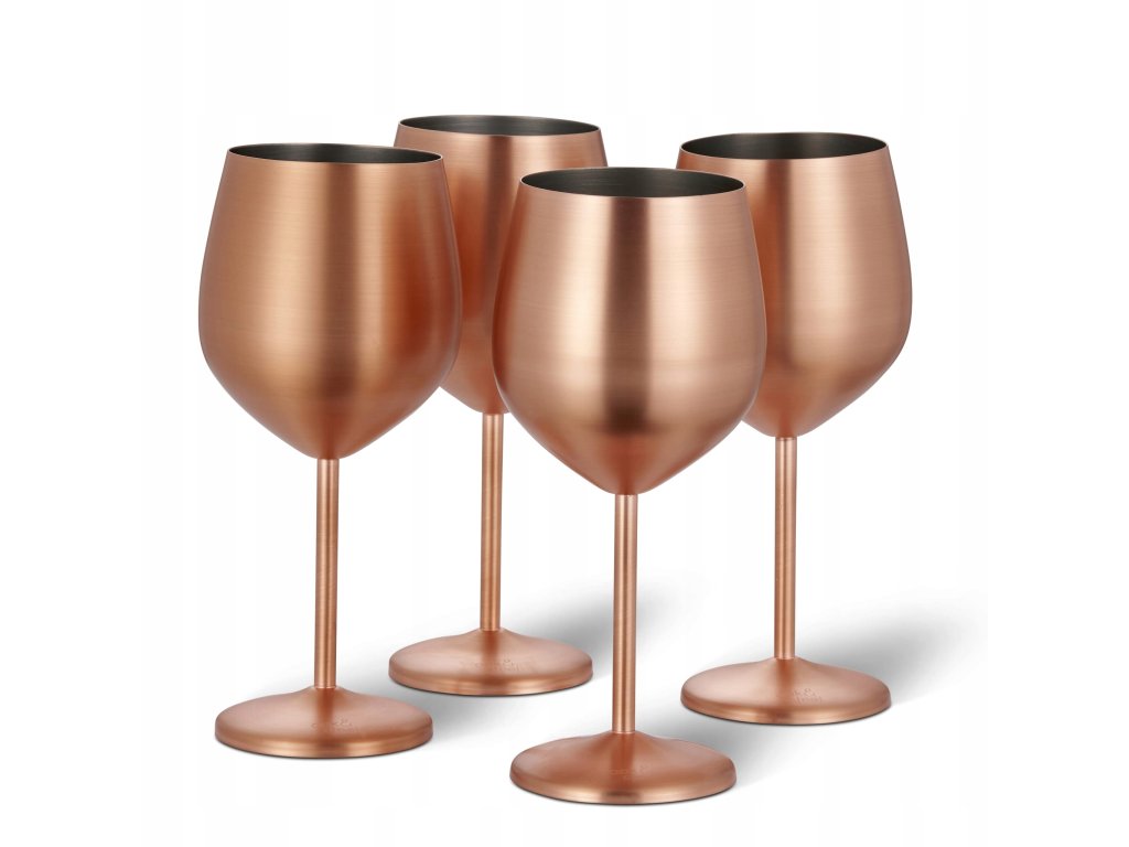 Táto sada 4 nerezových pohárov na víno v ružovo-zlatom matnom dizajne spája moderný vzhľad s praktickým využitím. Matný povrch pôsobí elegantne a sofistikovane, vďaka čomu sa tieto poháre hodia na slávnostné stolovanie, romantické večere aj priateľské posedenia.