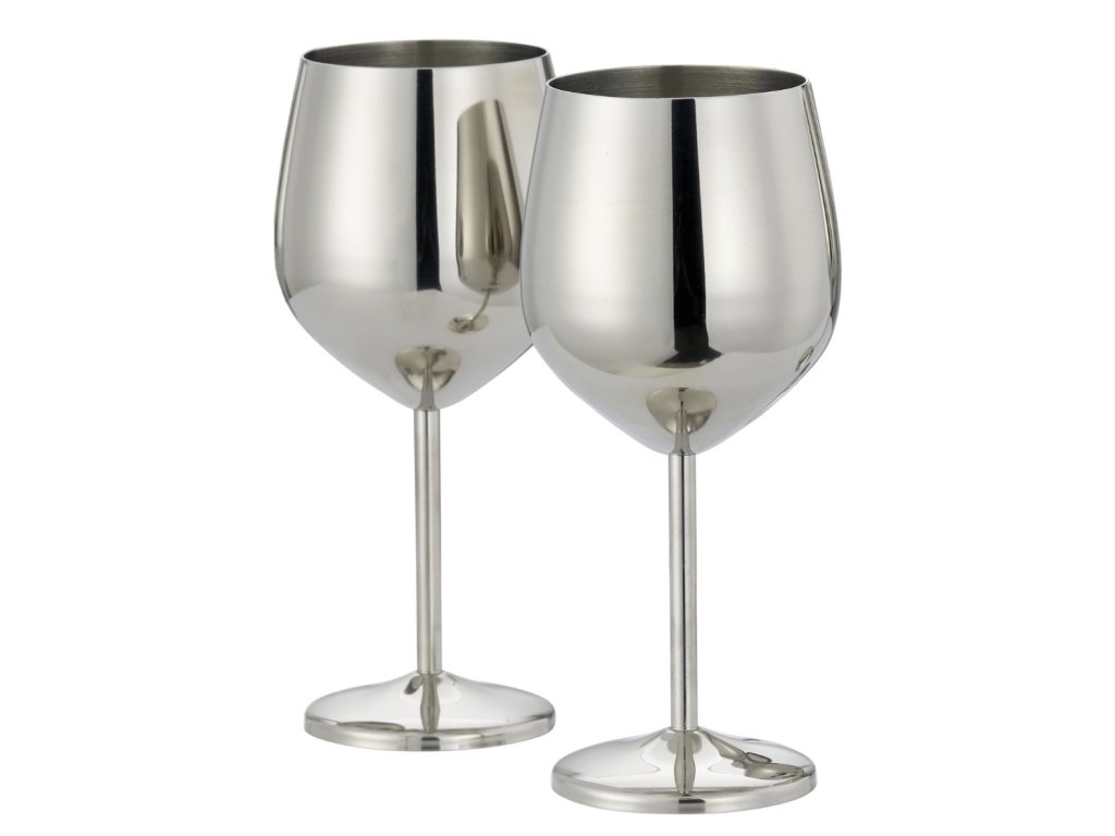 Táto sada 2 nerezových pohárov na víno v striebornom lesklom prevedení predstavuje spojenie luxusného dizajnu a praktického využitia. Minimalistický tvar a lesklý kovový efekt dodajú sofistikovaný nádych svadbám, oslavám aj bežným večerom vo dvojici.