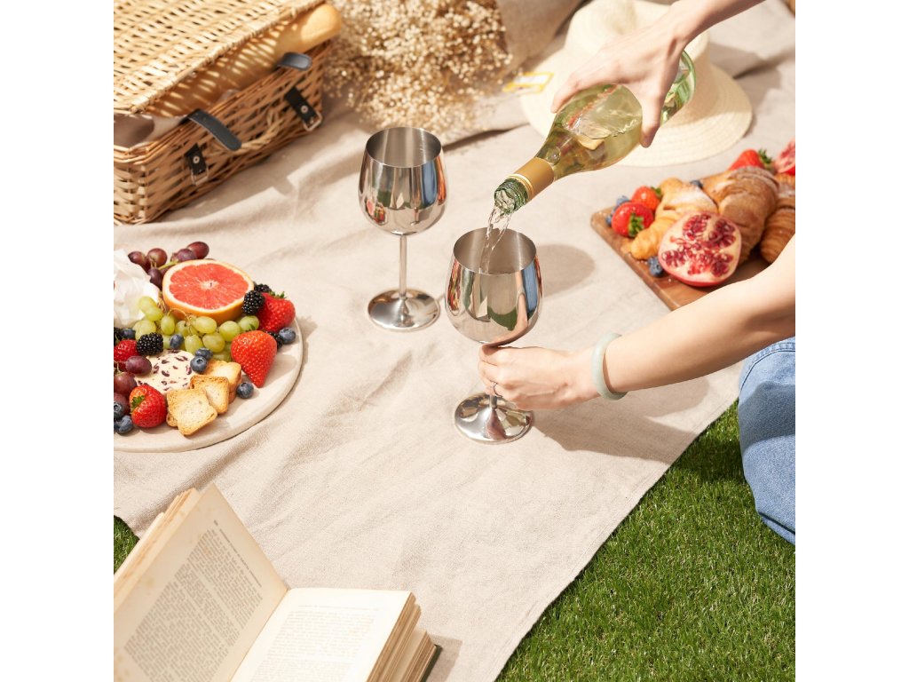 Každý pohár je vyrobený z kvalitnej nerezovej ocele, vďaka čomu sú nerozbitné, odolné a udržia víno či drinky chladnejšie dlhšie než sklo. Objem 500 ml z nich robí univerzálny doplnok na víno, miešané koktaily aj špeciálne príležitosti.