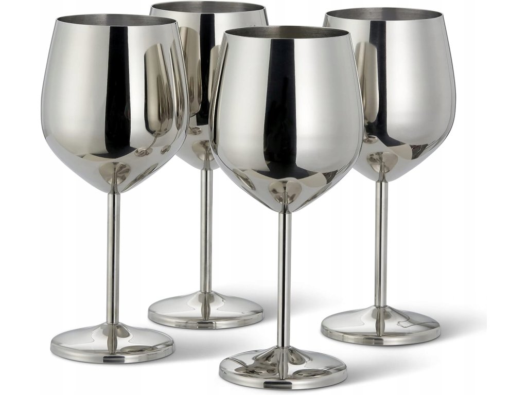 Sada 4 nerezových pohárov na víno – elegantný strieborný lesk 500 ml