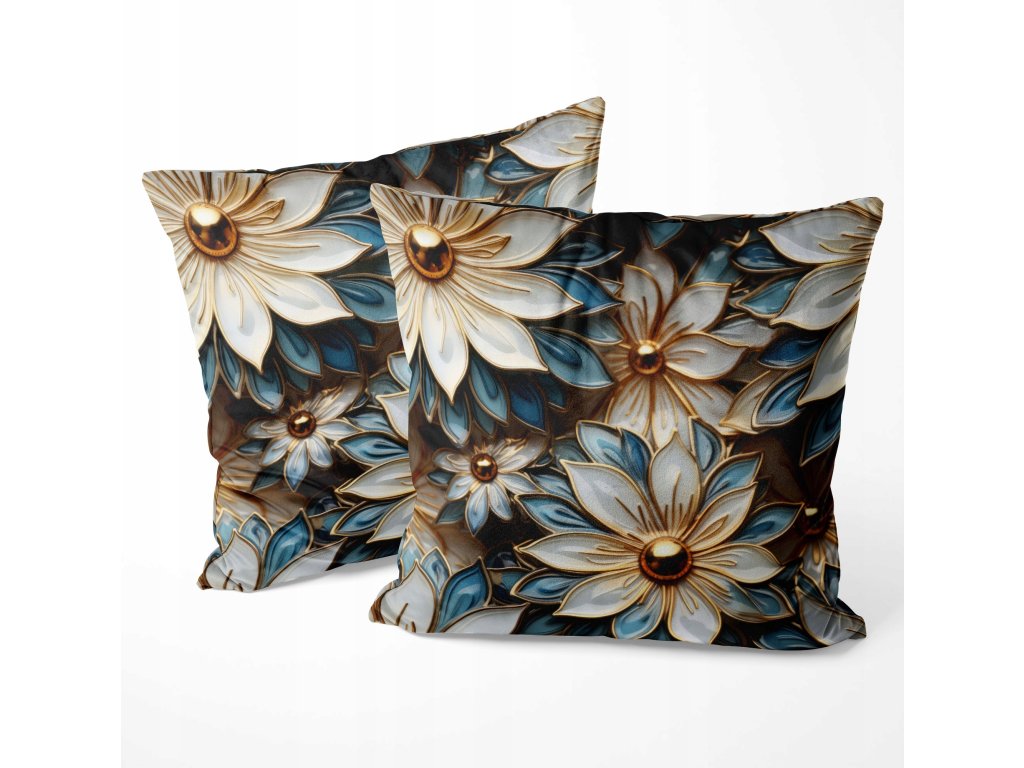 Obliečka na vankúš Gold Bloom vnesie do vášho domova šmrnc a eleganciu. Bohaté kvetinové motívy s bielymi a modrými lupienkami v kombinácii so zlatým stredom vytvárajú luxusný trojrozmerný efekt. Tento dizajn je ideálny pre klasické aj moderné interiéry, kde sa kladie dôraz na detaily. K dispozícii je velúr alebo mikrovlákno, oba materiály ponúkajú výnimočný komfort. Dostupné rozmery: 40×40 cm, 45×45 cm a 50x50 cm.