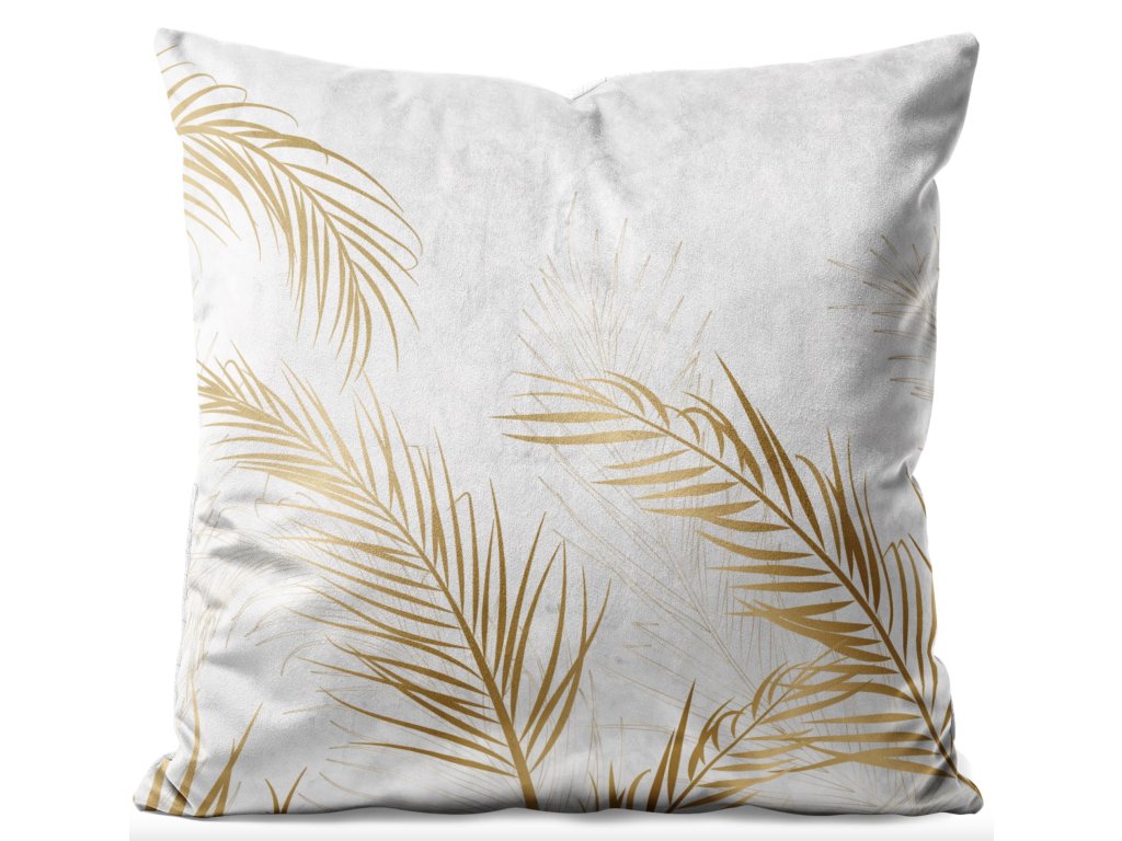 Obliečka na vankúš Golden Palm – zlatisté palmové listy na bielom podklade