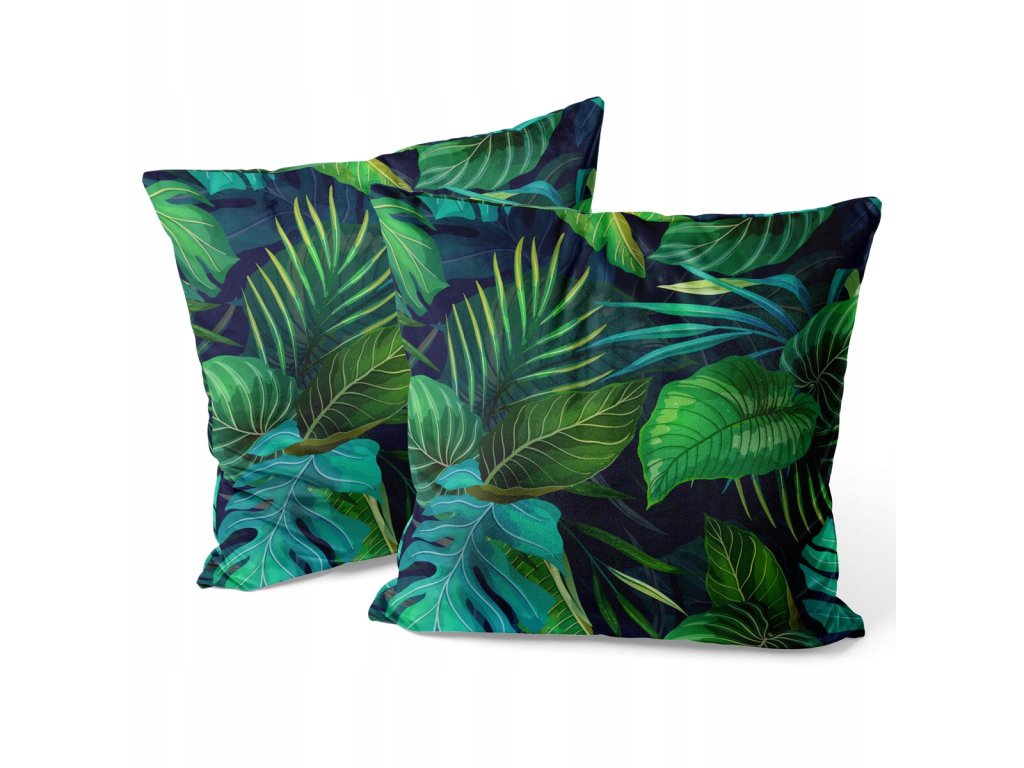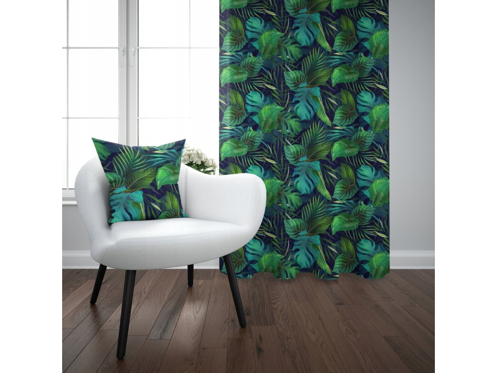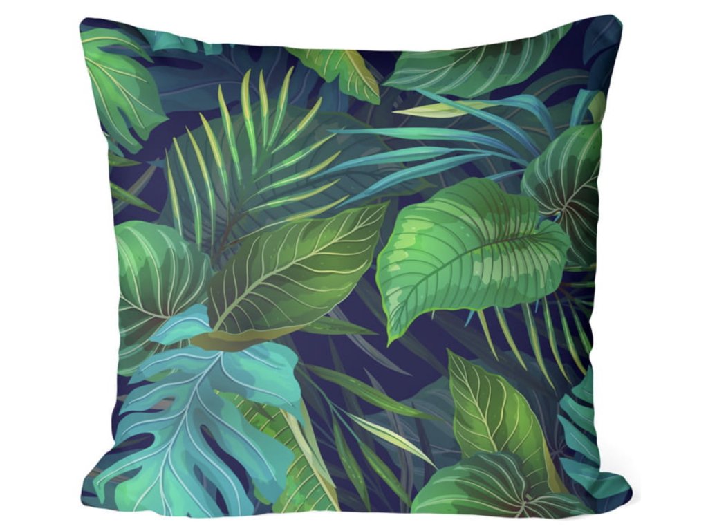 Obliečka na vankúš Jungle Midnight – sýtozelené tropické listy na tmavomodrom podklade