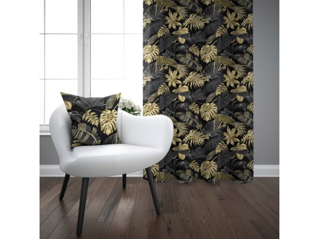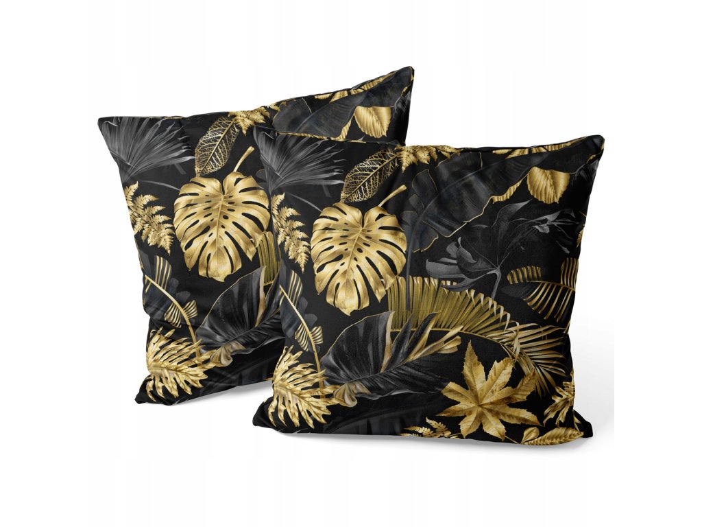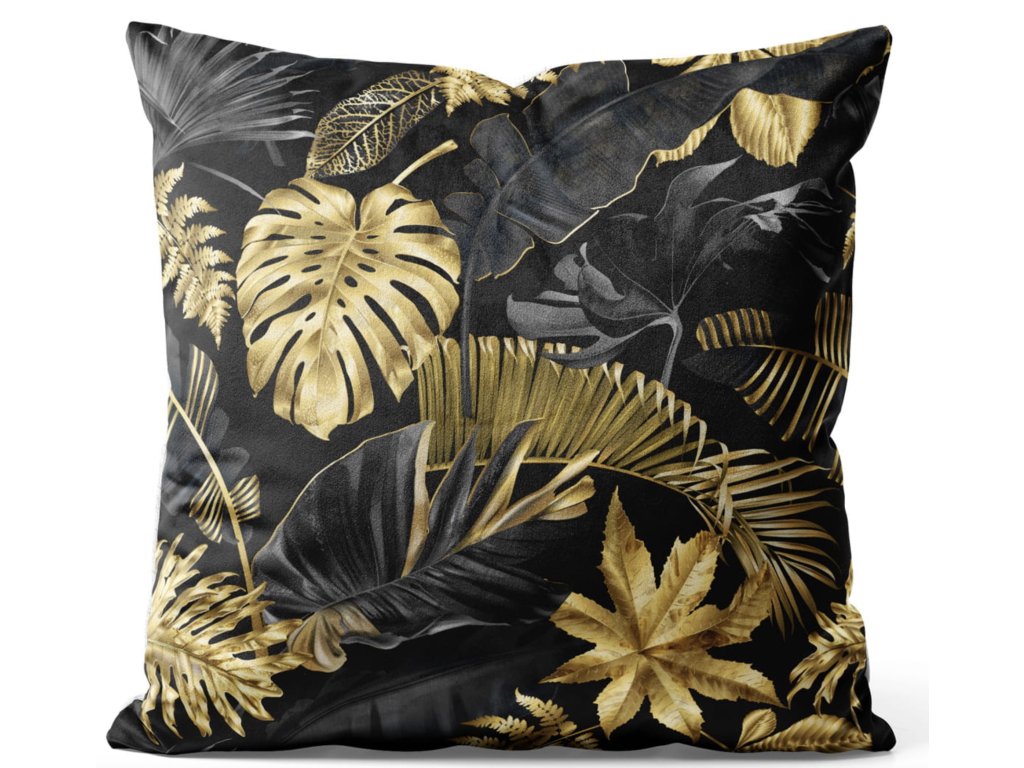 Obliečka na vankúš Midnight Jungle – tropický listový vzor v čiernej a zlatej