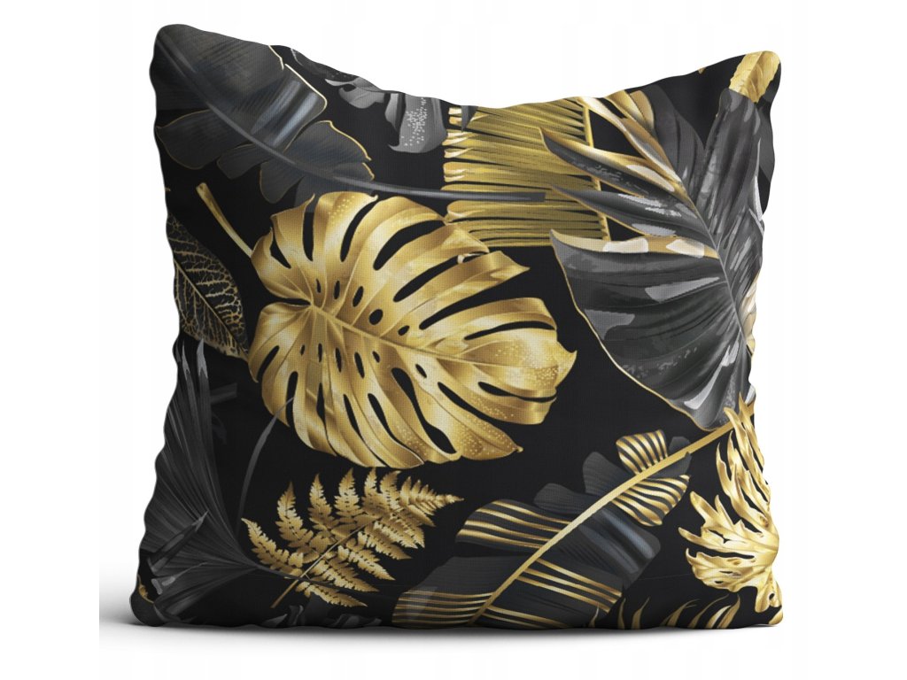 Obliečka na vankúš Midnight Jungle prináša kombináciu výrazného kontrastu a exotického štýlu. Tropický listový motív v zlatej farbe na hlbokom čiernom pozadí pôsobí moderne, luxusne a pritom výnimočne. Skvelo sa hodí do tmavých interiérov, glam štýlu či ako akcentový doplnok v obývačke alebo spálni. Vyrobená v EÚ z kvalitného mikrovlákna alebo hebkého velúru, dostupná v troch veľkostiach.