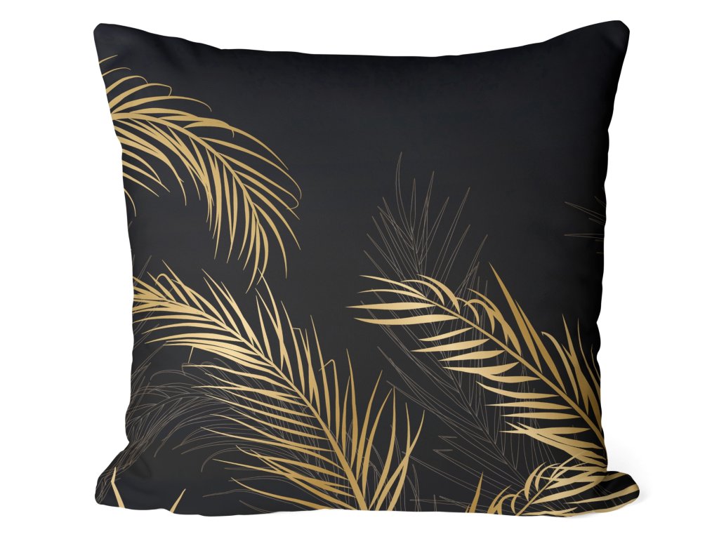 Obliečka na vankúš Noir Palms – čierno-zlatý listový vzor s luxusným nádychom
