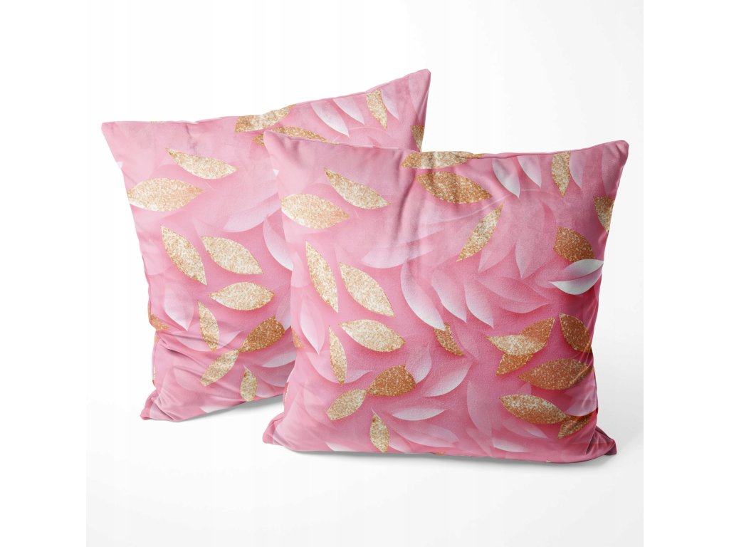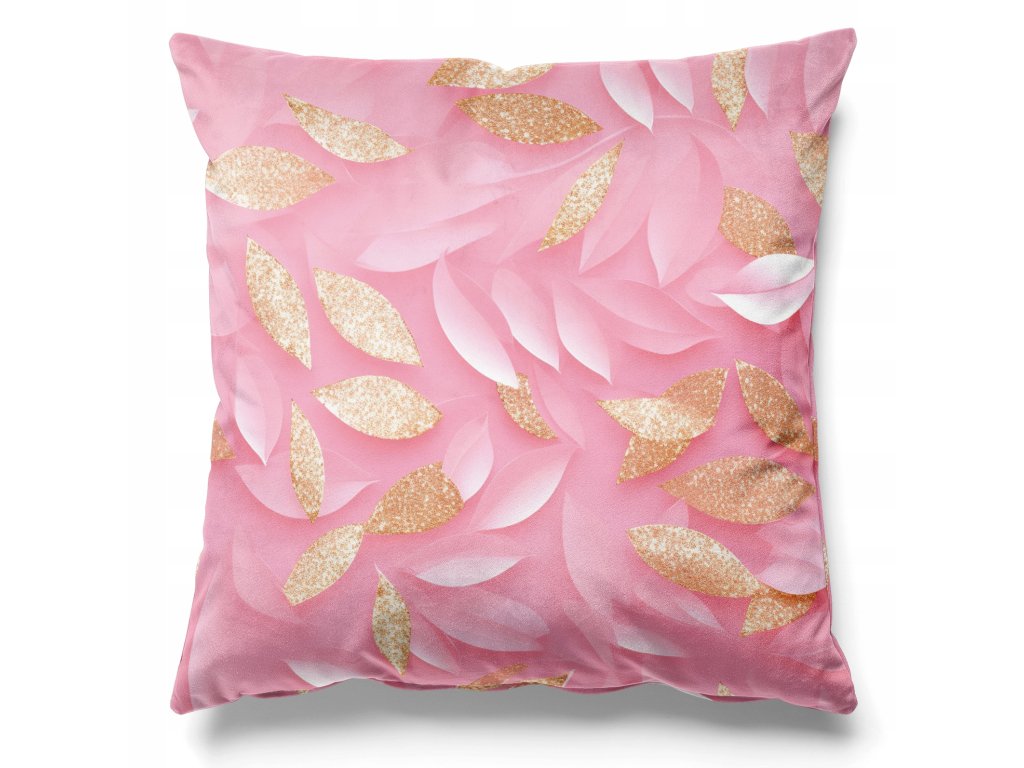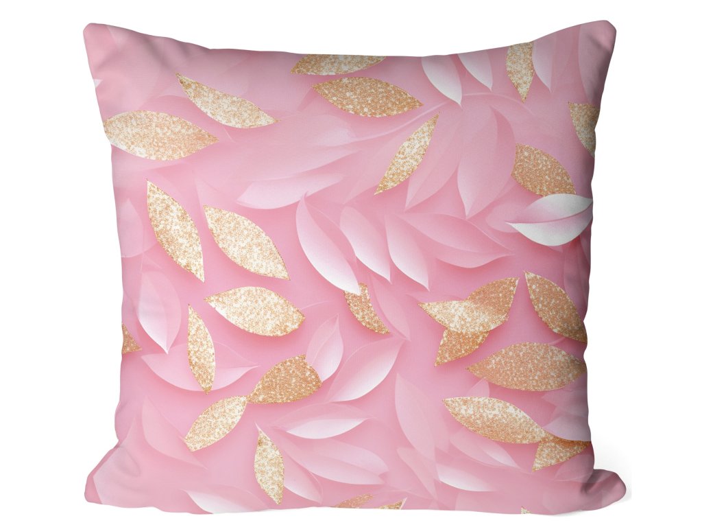 Obliečka na vankúš Pink Blush – jemný listový vzor v ružovej a zlatej s 3D efektom