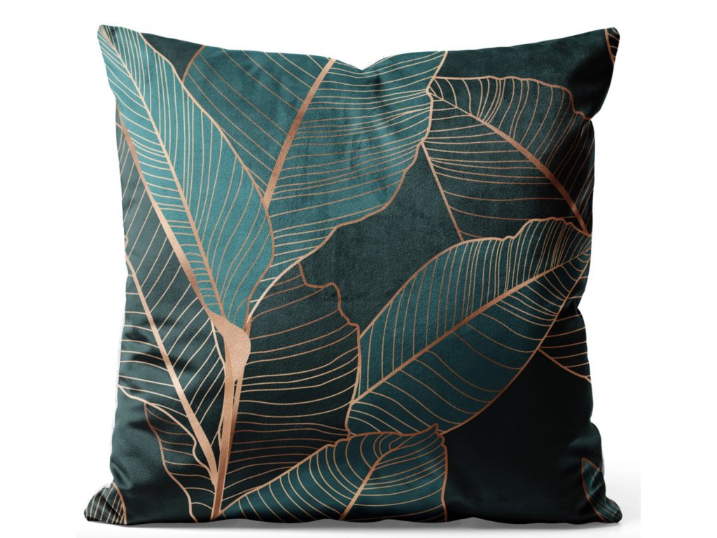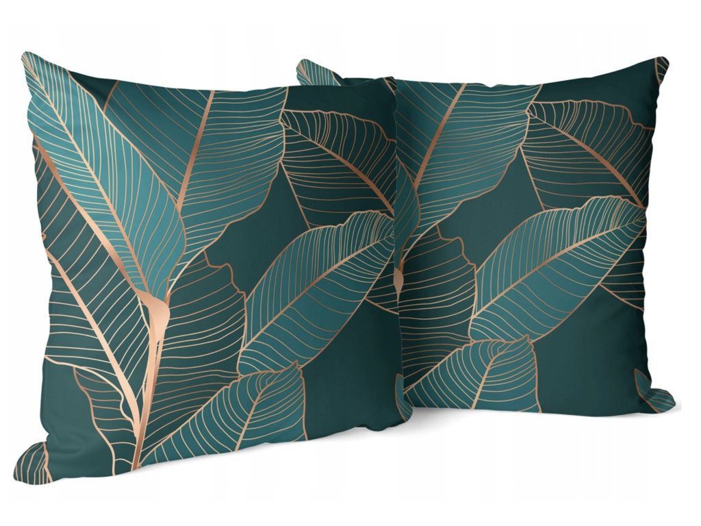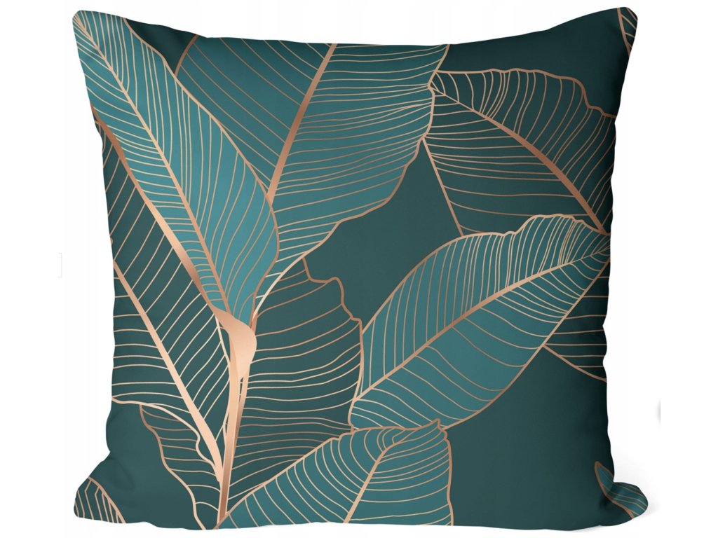 Obliečka na vankúš Tropical Harmony – vzor zelených listov so zlatou kresbou