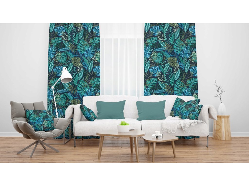 Obliečka na vankúš s výrazným tropickým motívom v modrej a zelenej farebnosti dodá interiéru svieži a hravý charakter. Tmavomodré pozadie vytvára perfektný kontrast pre žiarivé listy a vynikne v moderných aj boho priestoroch.