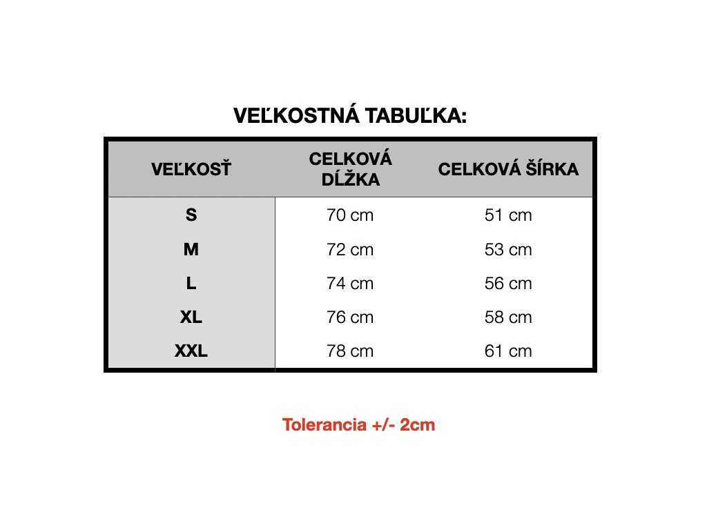 Do poznámky pri objednávke prosíme uviesť požadované veľkosti pre obe tričká podľa tabuľky veľkostí.
