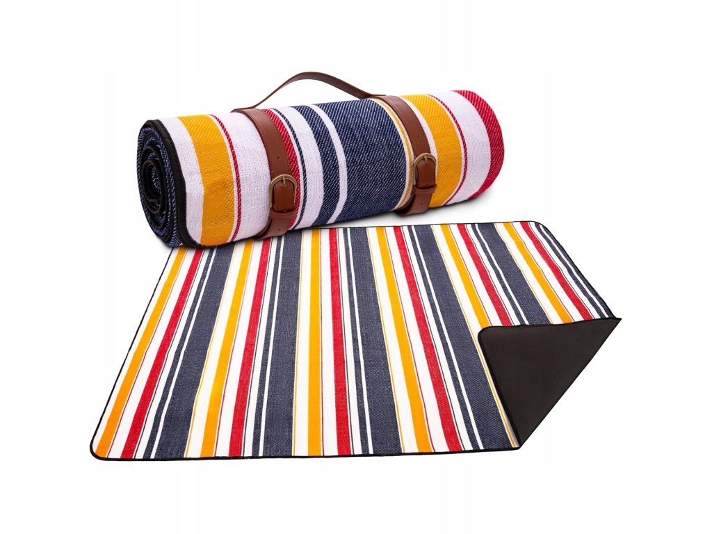Pikniková deka 200×200 cm s nepremokavým dnom a farebnými pruhmi