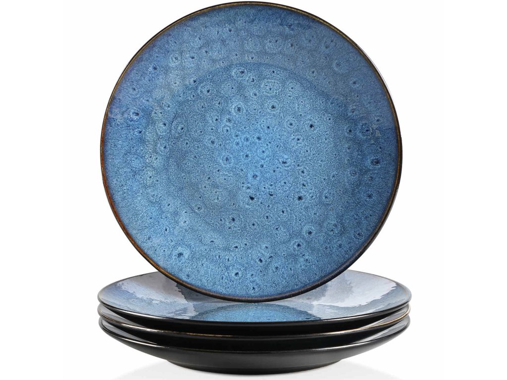 Bublia Blue – sada 4 kameninových plytkých tanierov, priemer 27,3 cm