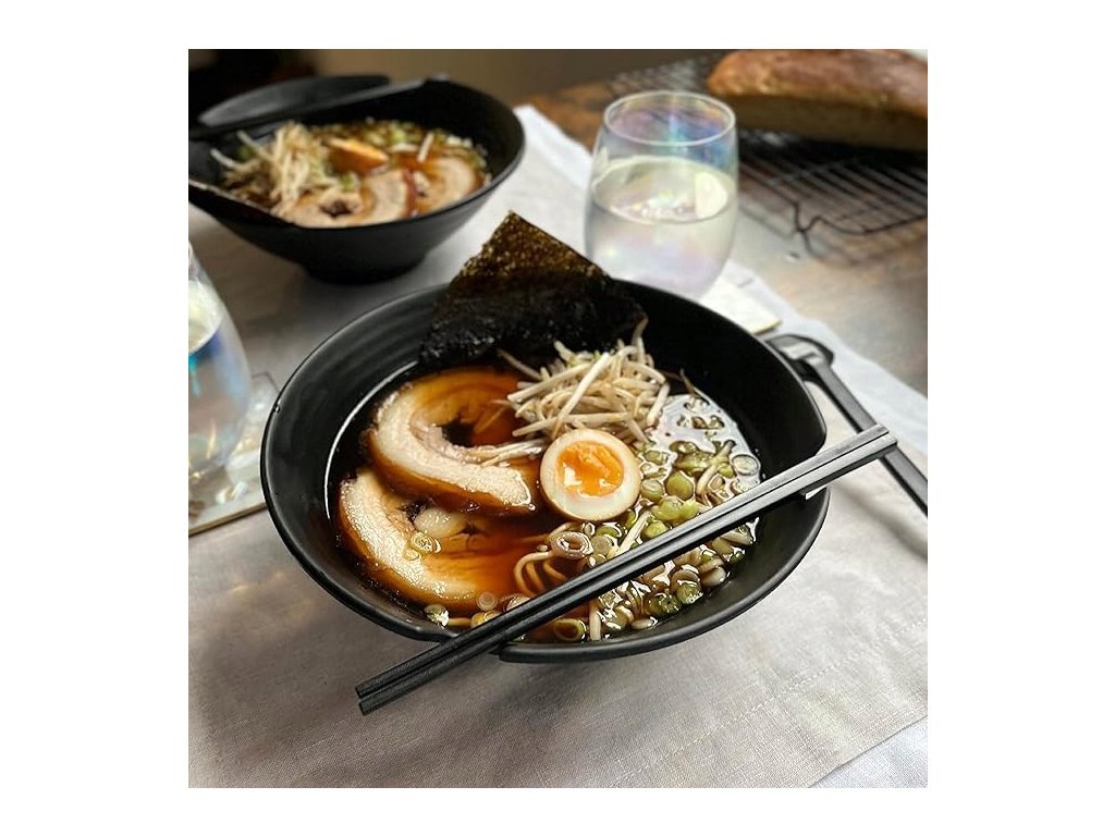 Potrebujete jedálenský set, ktorý je praktický a zároveň elegantný? Táto čierna súprava na ramen v japonskom štýle prinesie do vašej domácnosti atmosféru tradičnej Ázie. Misky s objemom 1000 ml sú ideálne na servírovanie polievok, rezancov, šalátov či wok jedál. Vďaka protišmykovému povrchu a odolnému materiálu z plastu imitujúceho keramiku je súprava nielen vizuálne atraktívna, ale aj bezpečná a praktická.