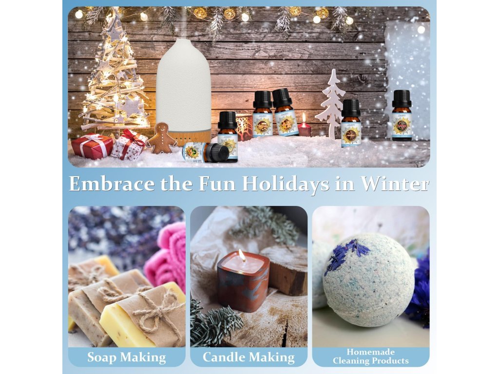 Olejová sada je balená v praktických 10 ml fľaštičkách, ktoré umožňujú pohodlné používanie a kombinovanie vôní podľa nálady. Je to skvelý darček pre milovníkov zimy a Vianoc, alebo spôsob, ako si spríjemniť vlastný domov.
