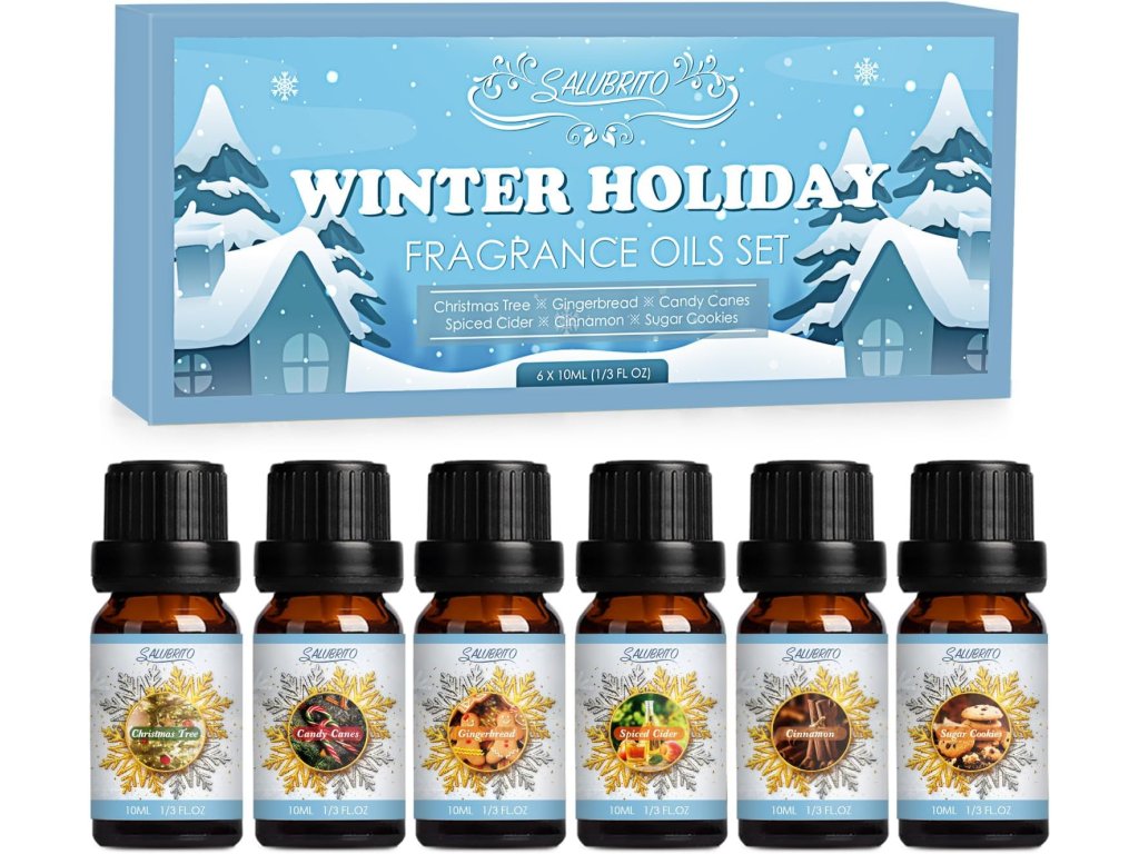 Sada éterických olejov Winter Holiday – Christmas Tree, Gingerbread, Candy Canes & more (6×10 ml)