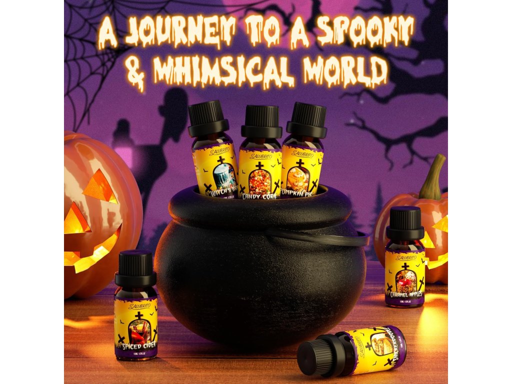 Ponorte sa do tajomnej atmosféry s prémiovou kolekciou olejov Halloween. Sada obsahuje šesť originálnych vôní, ktoré dokonale vystihujú sladko-strašidelnú náladu tohto sviatku. Od vône tekvicového koláča, cez sladké karamelové jablká až po magickú zmes Witch’s Brew – každý olej vnesie do vášho priestoru špeciálne čaro.