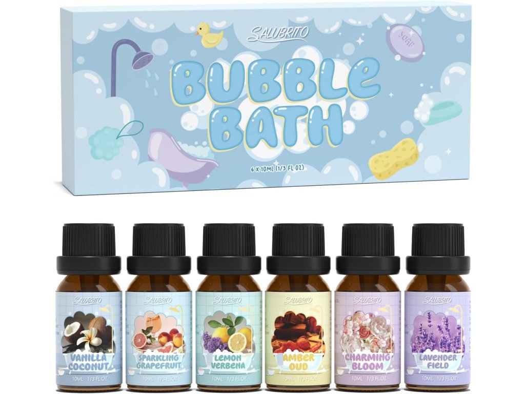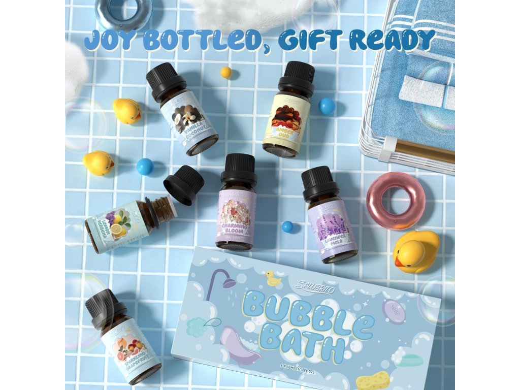 Sada éterických olejov Bubble Bath – Vanilla & Coconut, Sparkling Grapefruit, Lavender Field & more (6×10 ml)
