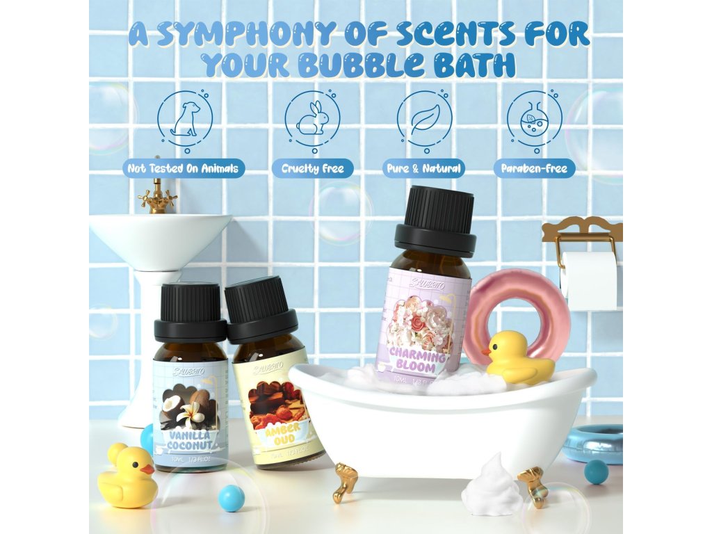 Táto kolekcia éterických olejov Bubble Bath prináša šesť osviežujúcich a relaxačných vôní, ktoré zmenia váš kúpeľ alebo sprchu na malý wellness rituál. Od sladkej kombinácie vanilky & kokosu, cez šťavnatý grapefruit, až po upokojujúce levanduľové pole – každý olej poteší vaše zmysly a navodí príjemnú atmosféru. Vhodné do difuzérov, sviečok, kúpeľových solí aj kozmetických DIY projektov.