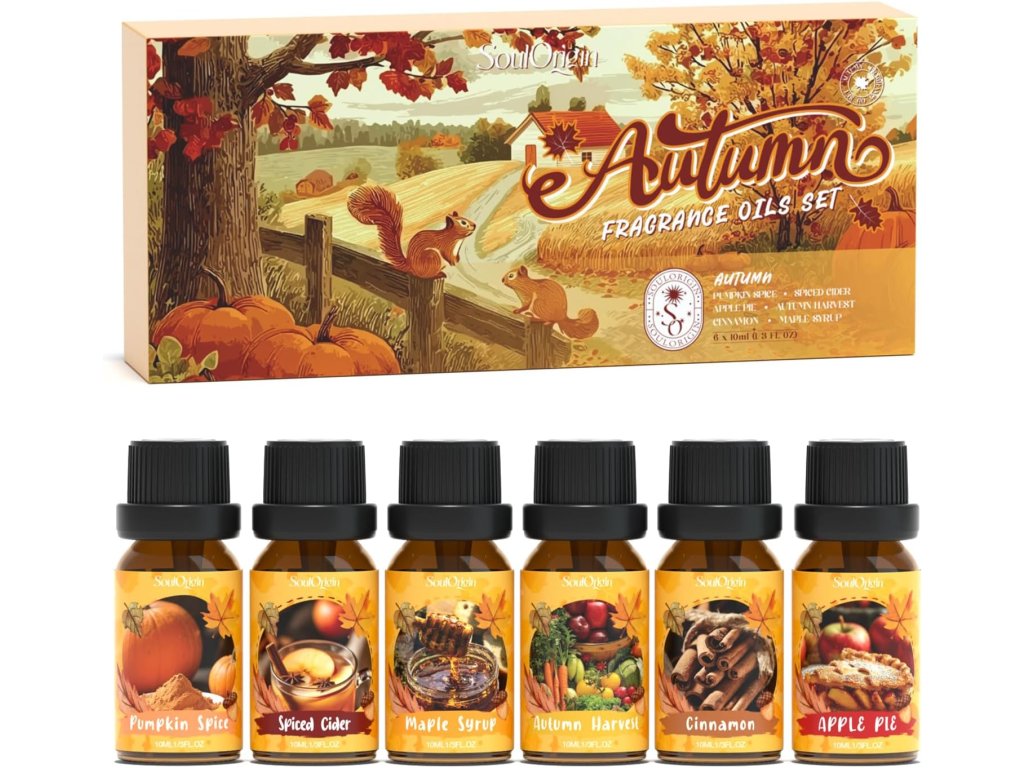 Sada jesenných éterických olejov – Pumpkin Spice, Jablkový koláč, Škorica a ďalšie (6×10 ml)