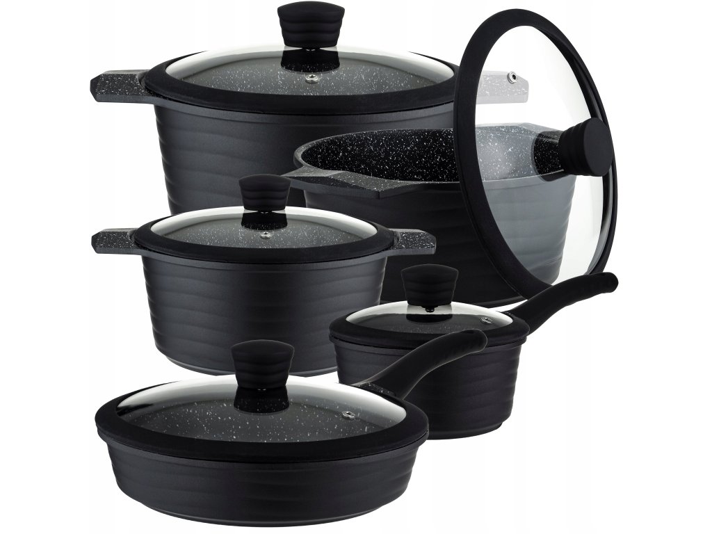 Súprava mramorových hrncov a panvíc – 10-dielna sada na všetky typy sporákov