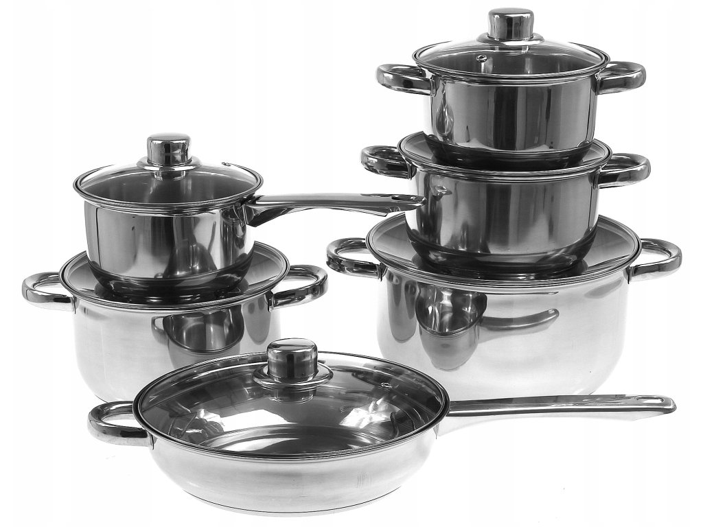 Sada nerezových hrncov s pokrievkami a panvicou – 12-dielna