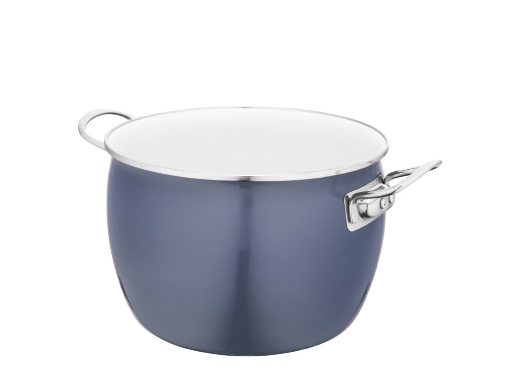 Každý hrniec je vybavený sklenenou pokrievkou s ergonomickým úchytom a má kovové úchyty pre bezpečnú manipuláciu. Povrch je odolný voči UV žiareniu, a tak si sýta modrá farba zachová svoj lesk po dlhé roky.