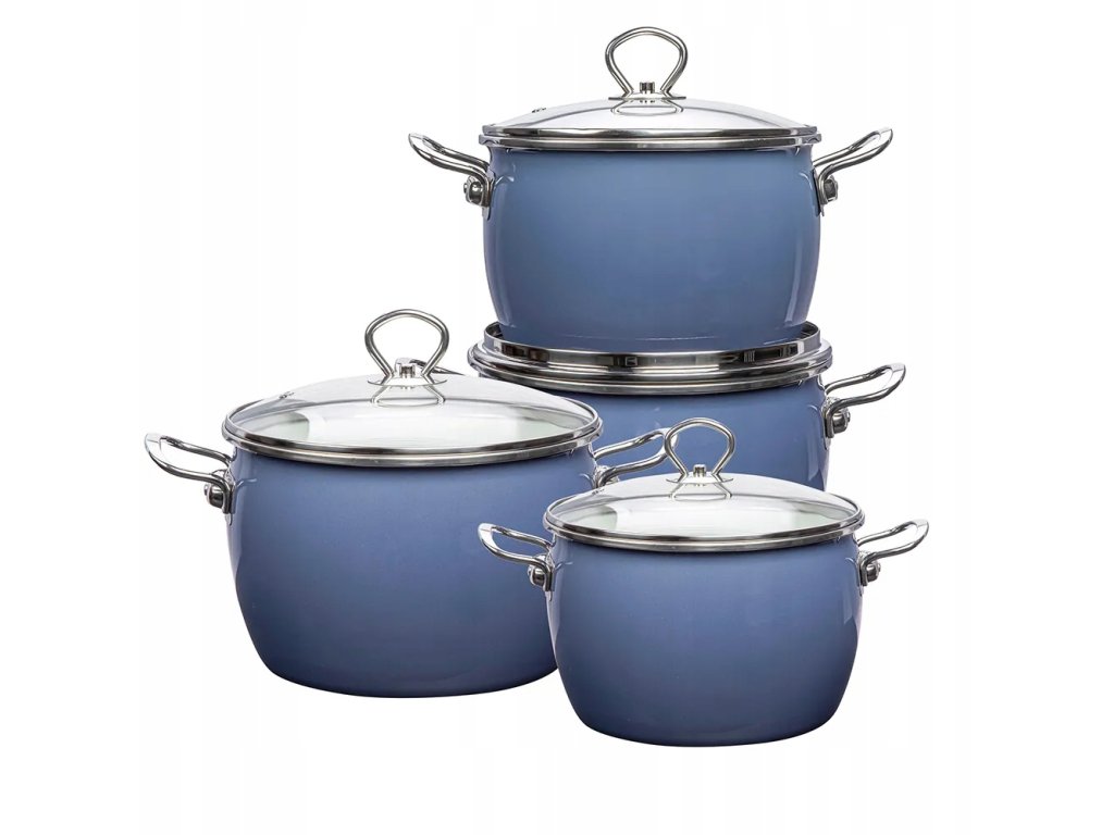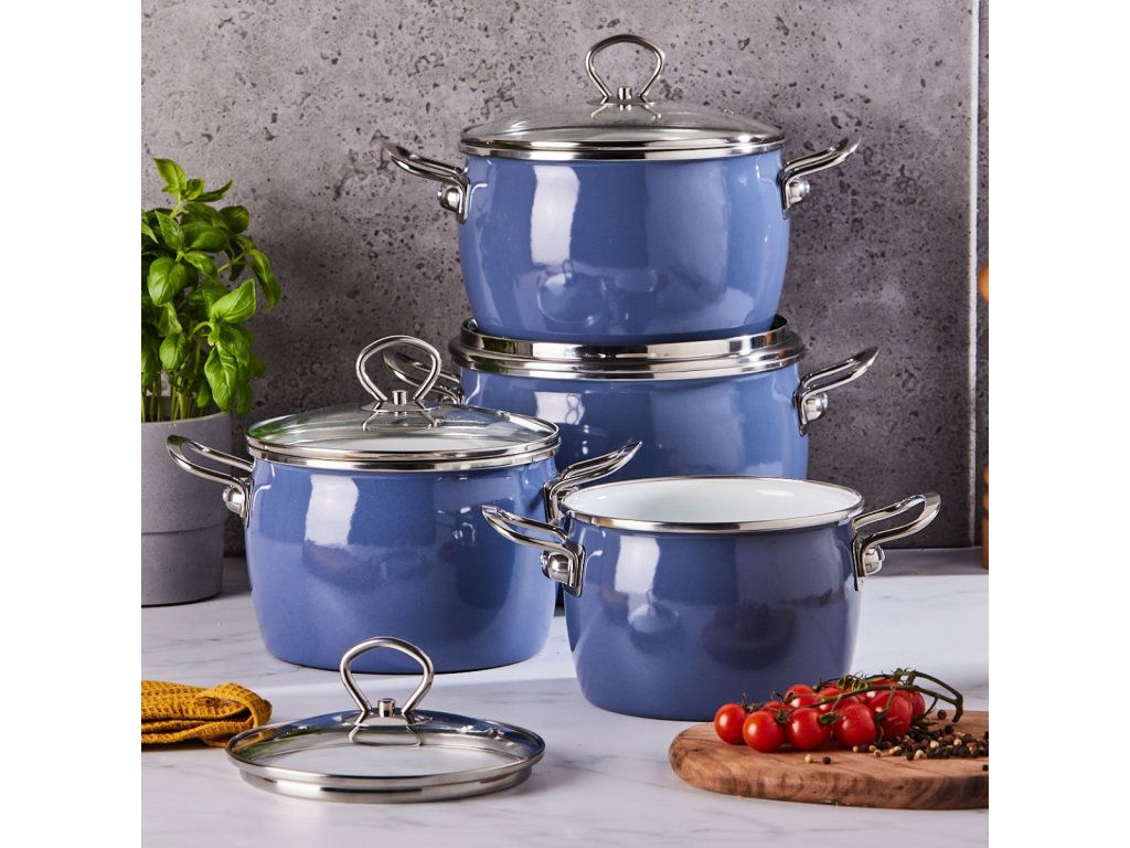 Smaltované hrnce 4 ks s pokrievkami – jemne modré, elegantné