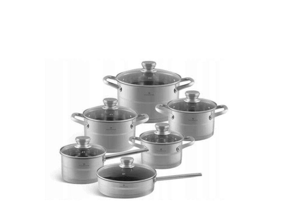 Vylepšite svoju kuchyňu s touto 12-dielnou sadou hrncov a panvice z nehrdzavejúcej ocele. Vďaka viacvrstvovému indukčnému dnu sa nádoby rýchlo a rovnomerne nahrievajú, udržujú teplotu a šetria energiu. Sklenené pokrievky s úchytmi umožňujú pohodlné sledovanie varenia bez zdvíhania. Ergonomické rukoväte sú nitované, pevné a zostávajú chladné na dotyk. Panvica je vybavená nepriľnavým povrchom a celá súprava je vhodná na všetky typy sporákov vrátane indukcie.