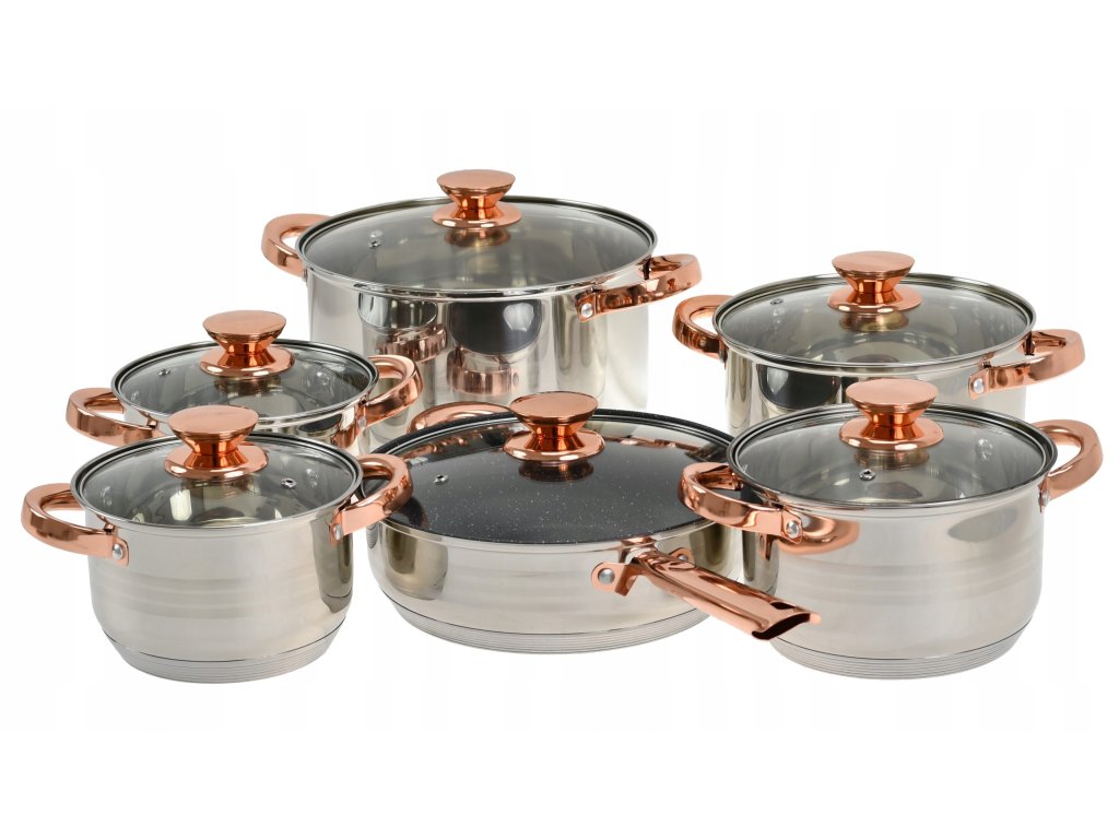 12-dielna sada hrncov z nehrdzavejúcej ocele + granitová panvica – univerzálne riešenie pre každú kuchyňu