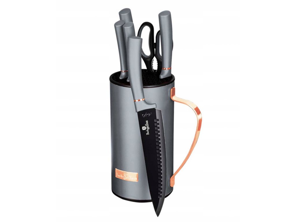 Sada kvalitných nožov s moderným stojanom je nevyhnutnou výbavou každej kuchyne. Nože sú vyrobené z nerezovej ocele s nepriľnavou úpravou, vďaka čomu sú odolné, nezanechávajú pachy a ľahko sa čistia. Ergonomické rukoväte typu Soft Touch sú potiahnuté tenkou silikónovou vrstvou pre pevný a pohodlný úchop. Praktický stojan vám umožní udržať poriadok a nože vždy po ruke.