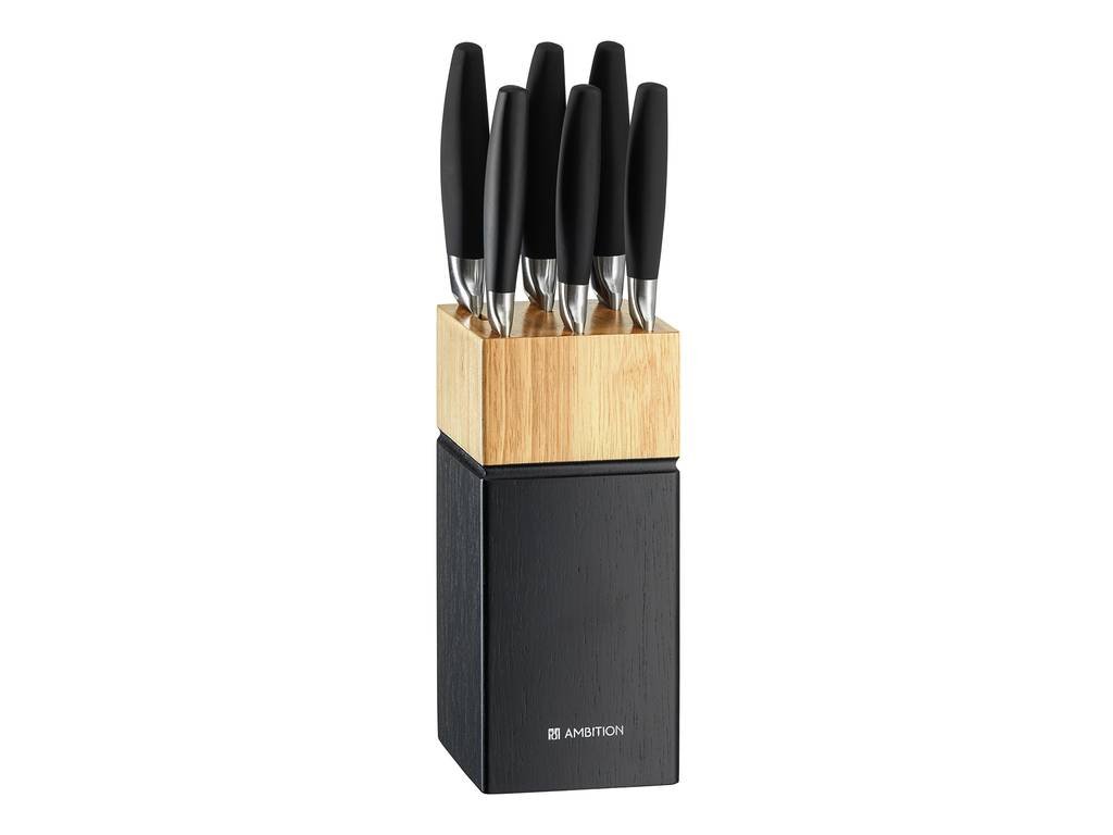 7-dielna sada kuchynských nožov v čiernej farbe s dreveným stojanom