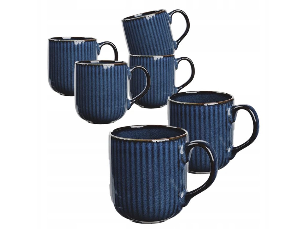 Modré reaktívne hrnčeky s reliéfom – sada 6 kusov, 400 ml