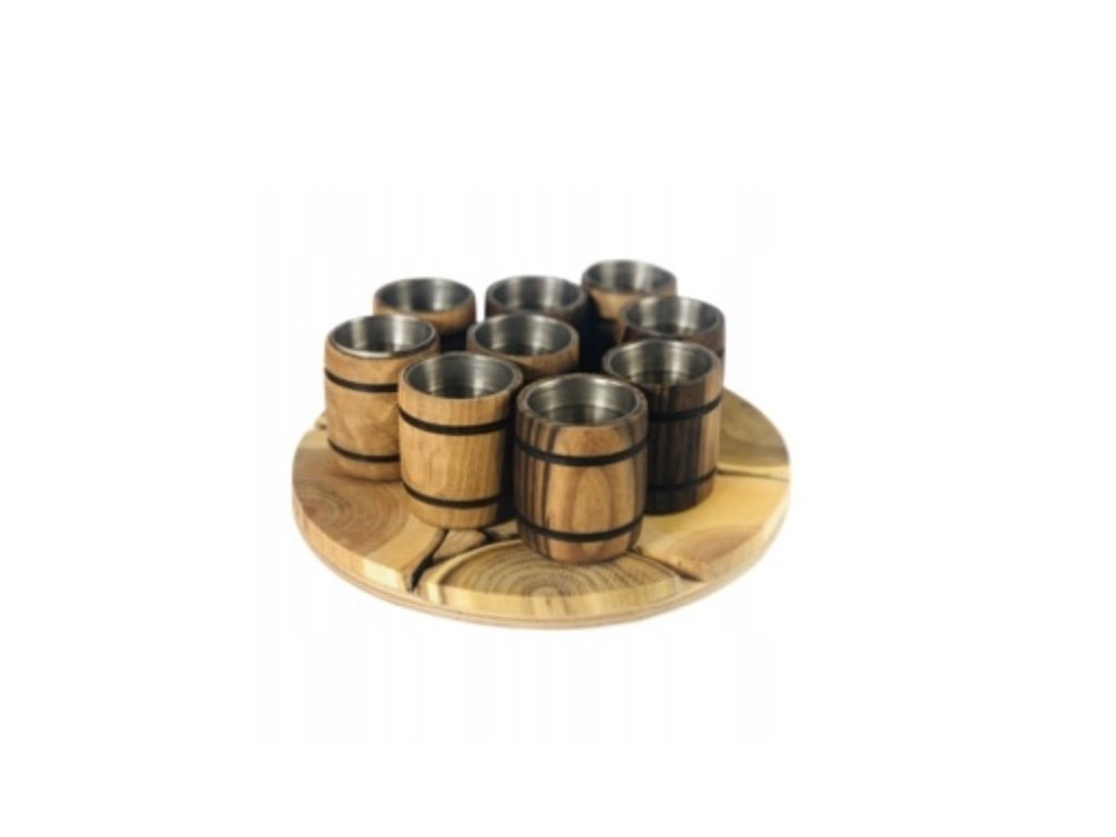 Doprajte si štýlové podávanie obľúbeného nápoja v jedinečných štamperlíkoch z orechového dreva. Ich vnútorná kovová vložka zaručuje hygienu a jednoduché čistenie. Prírodné drevo dodáva každému kúsku autentický vzhľad, takže každá sada je originál. Výborný nápad na darček alebo zaujímavý doplnok do vašej domácnosti či chalupy.