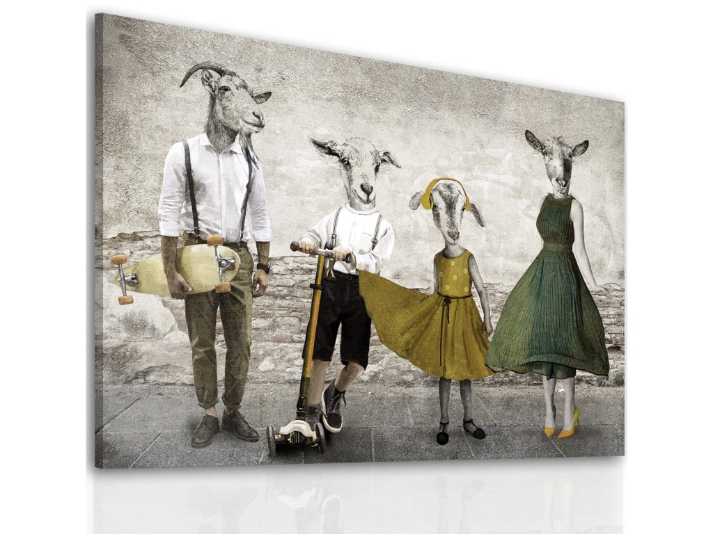 Moderný obraz na plátne – Kozia rodina na prechádzke mestom