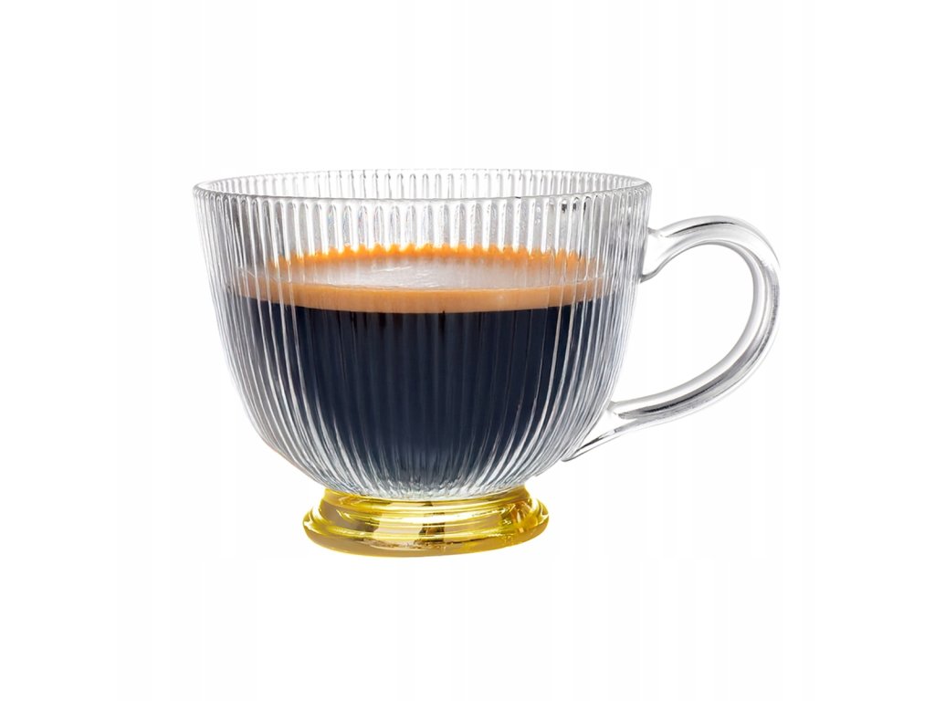 Sklenená šálka so zlatou nožičkou – 430 ml elegantná šálka na kávu alebo čaj