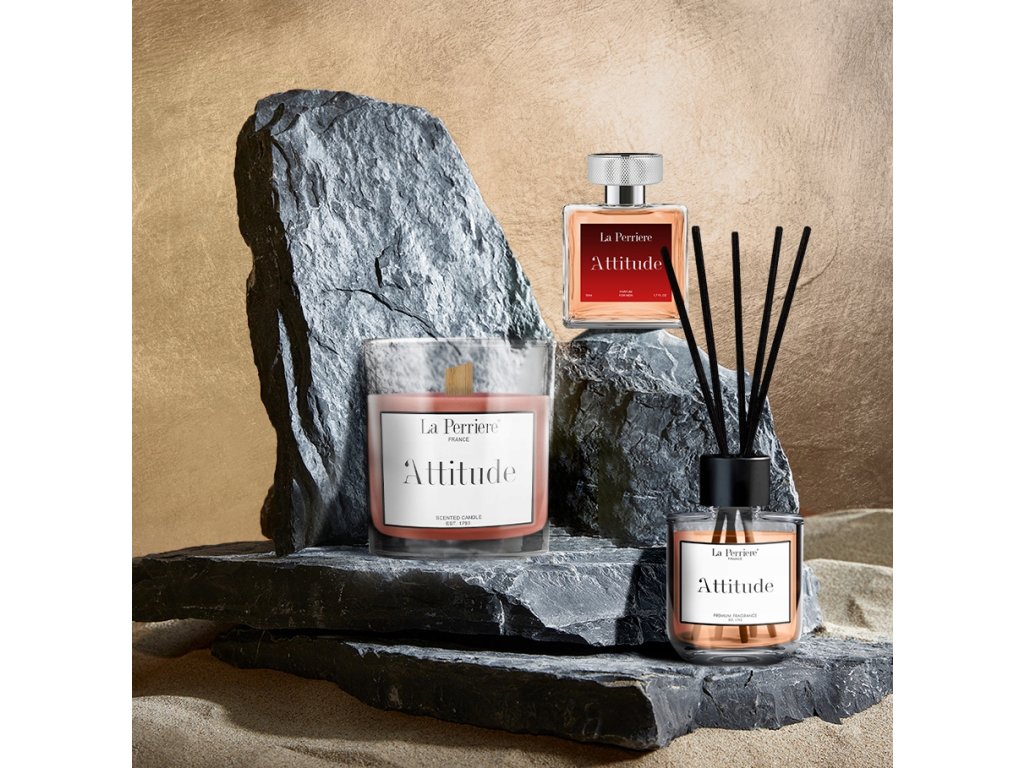 Attitude je francúzska vonná sviečka, ktorá v sebe spája eleganciu, kvalitu a zmyselnosť. Vďaka drevenému knôtu vytvára jemné praskanie, čím umocňuje relaxačnú atmosféru. Zloženie vôní je výnimočné – šťavnatá sicílska mandarínka sa prelína s kvetinovou fialkou a hlbokým tónom jemnej kože. Sviečka je vyrobená zo 100 % sójového vosku bez toxínov a jej výdrž dosahuje až 75 hodín horenia. Vhodná do obývačky, spálne aj kúpeľne – ako elegantný detail alebo darček.
