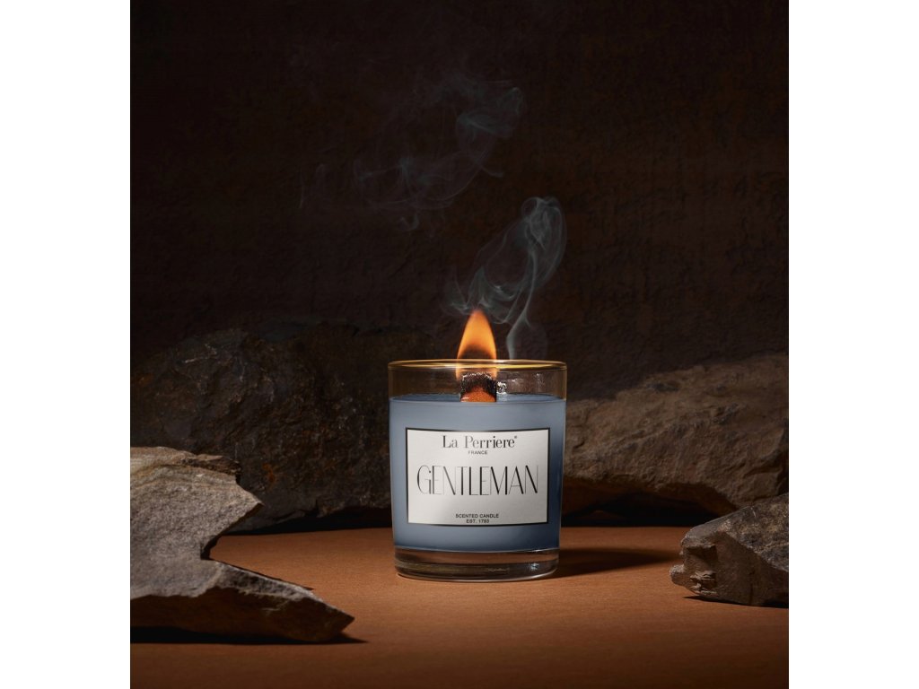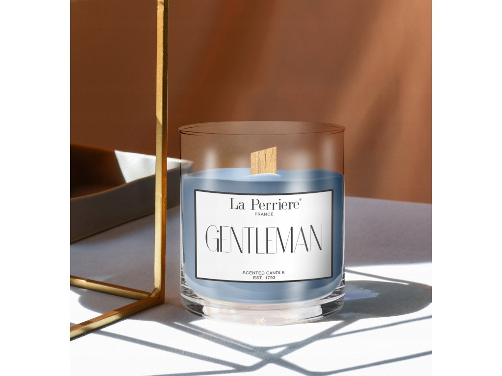 Gentleman je prémiová francúzska sviečka, ktorá zosobňuje mužskú eleganciu, pokoj a dôstojnosť. Jej drevený knôt navodzuje atmosféru útulného krbu a vôňa kombinuje kalábrijský bergamot, borievku virginia, santalové drevo a vanilku. Vyrobená je zo 100 % sójového vosku, ktorý horí čisto a bez škodlivín. S výdržou 60–75 hodín je ideálnym darčekom alebo doplnkom do pánskej spálne, pracovne či kúpeľne.