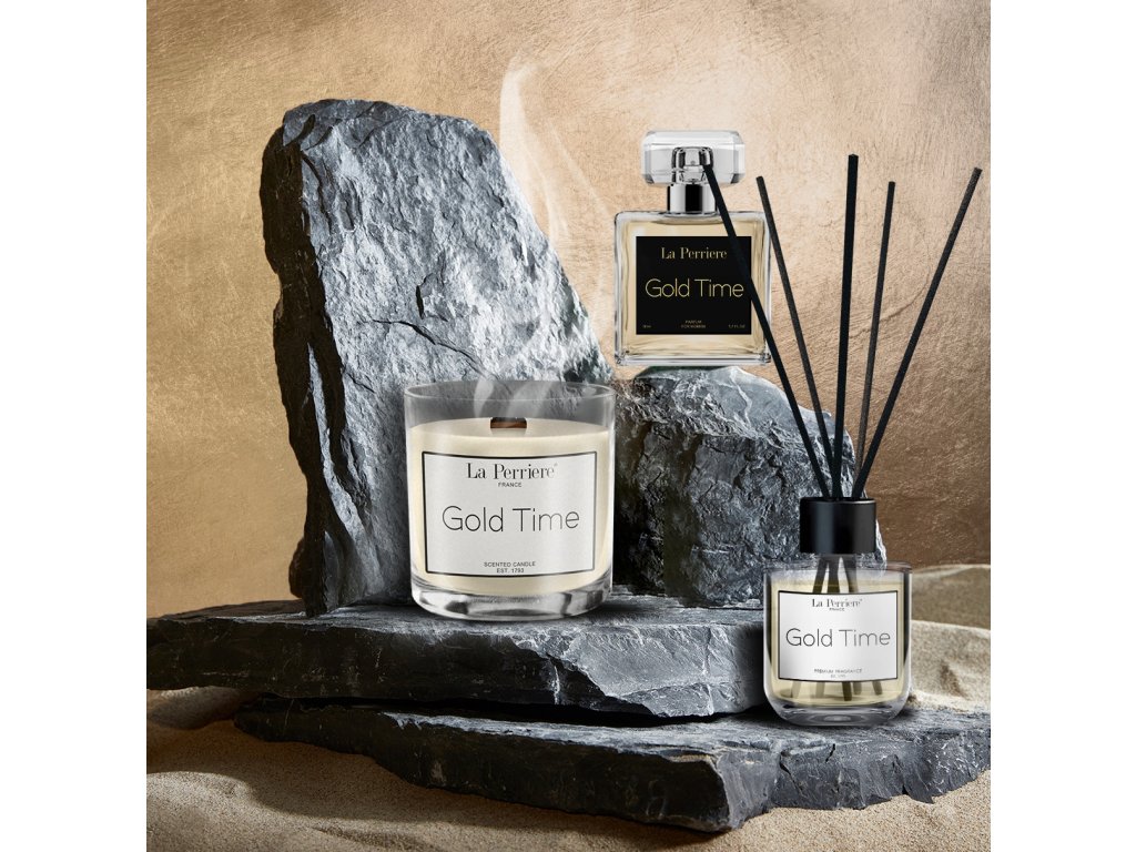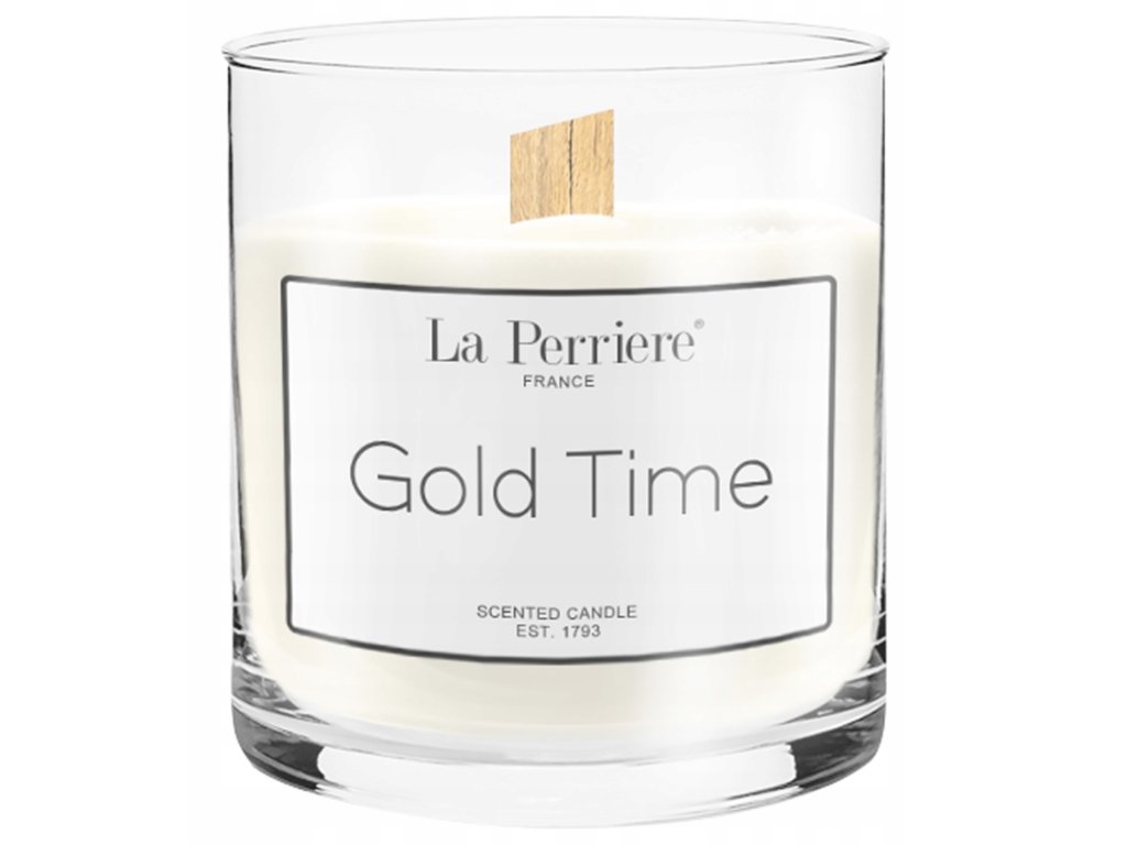 Vonná sviečka La Perriere – Gold Time s dreveným knôtom, sójový vosk, 75 hodín
