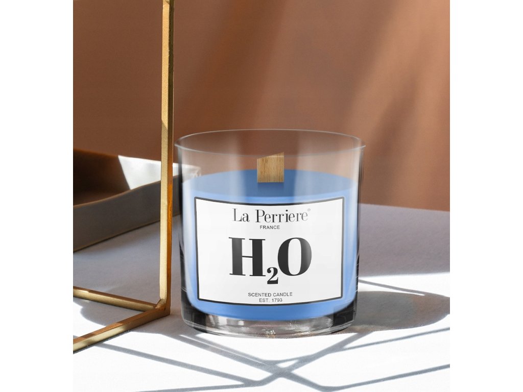 Vonná sviečka La Perriere – H₂O s dreveným knôtom, sójový vosk, 75 hodín