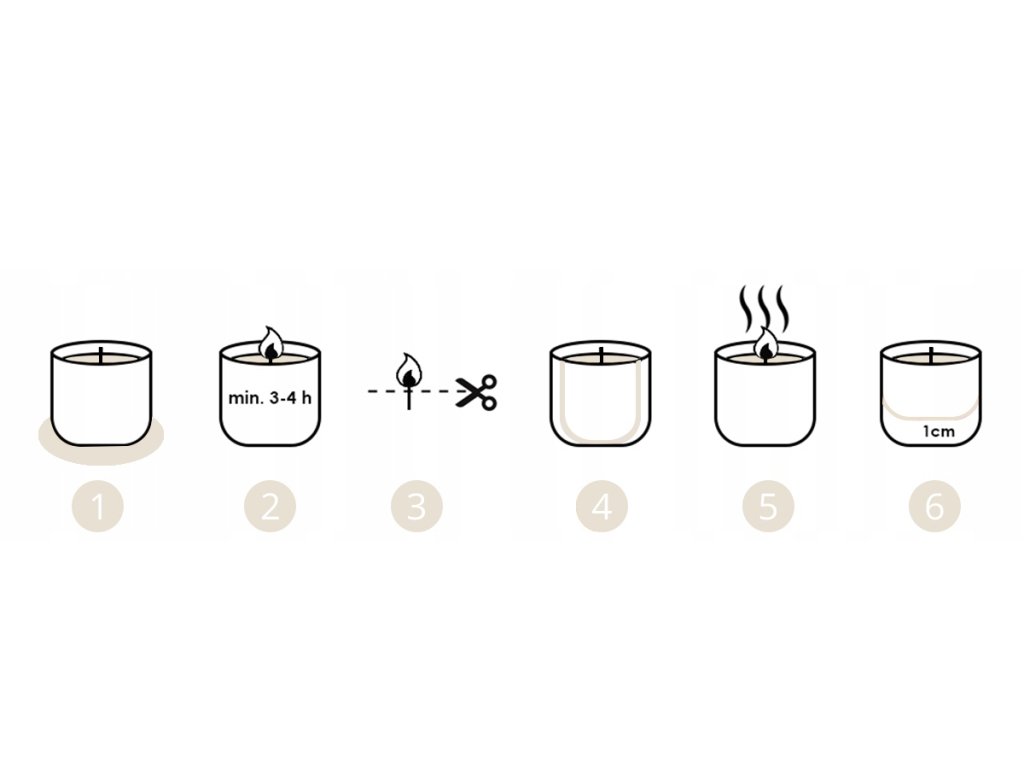 🕯️ TIP: Pri každom zapálení nechajte sviečku horieť aspoň 2 hodiny, aby sa vosk rovnomerne roztopil a predišlo sa tunelovaniu.
