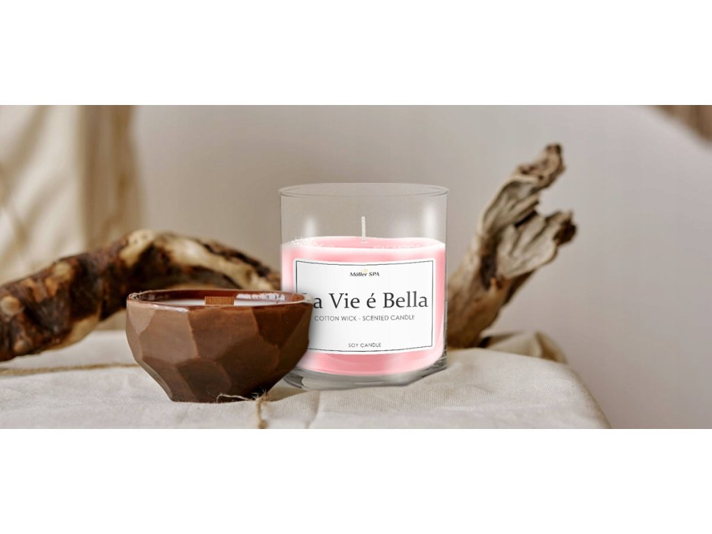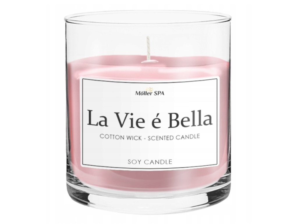 Vonná sviečka Moller SPA – La Vie é Bella s bavlneným knôtom, sójový vosk, 75 hodín